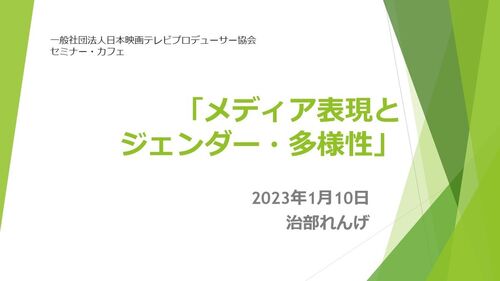 日本映画テレビプロデューサー協会でオンラインセミナーを行いました。テーマは「メディア表現とジェンダー・多様性」。 ジェンダーとは何か 炎上しやすいポイントとメディアが注意すべきこと 国内外のドラマや映画をジェンダー視点で読み解く 洋画マーケテ…